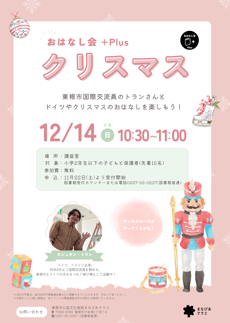 東根市国際交流員のトランさんと、ドイツやクリスマスのおはなしを楽しもう!
