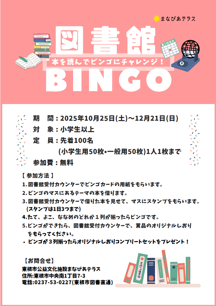 ビンゴが3列揃ったらオリジナルしおりコンプリートセットをプレゼント!