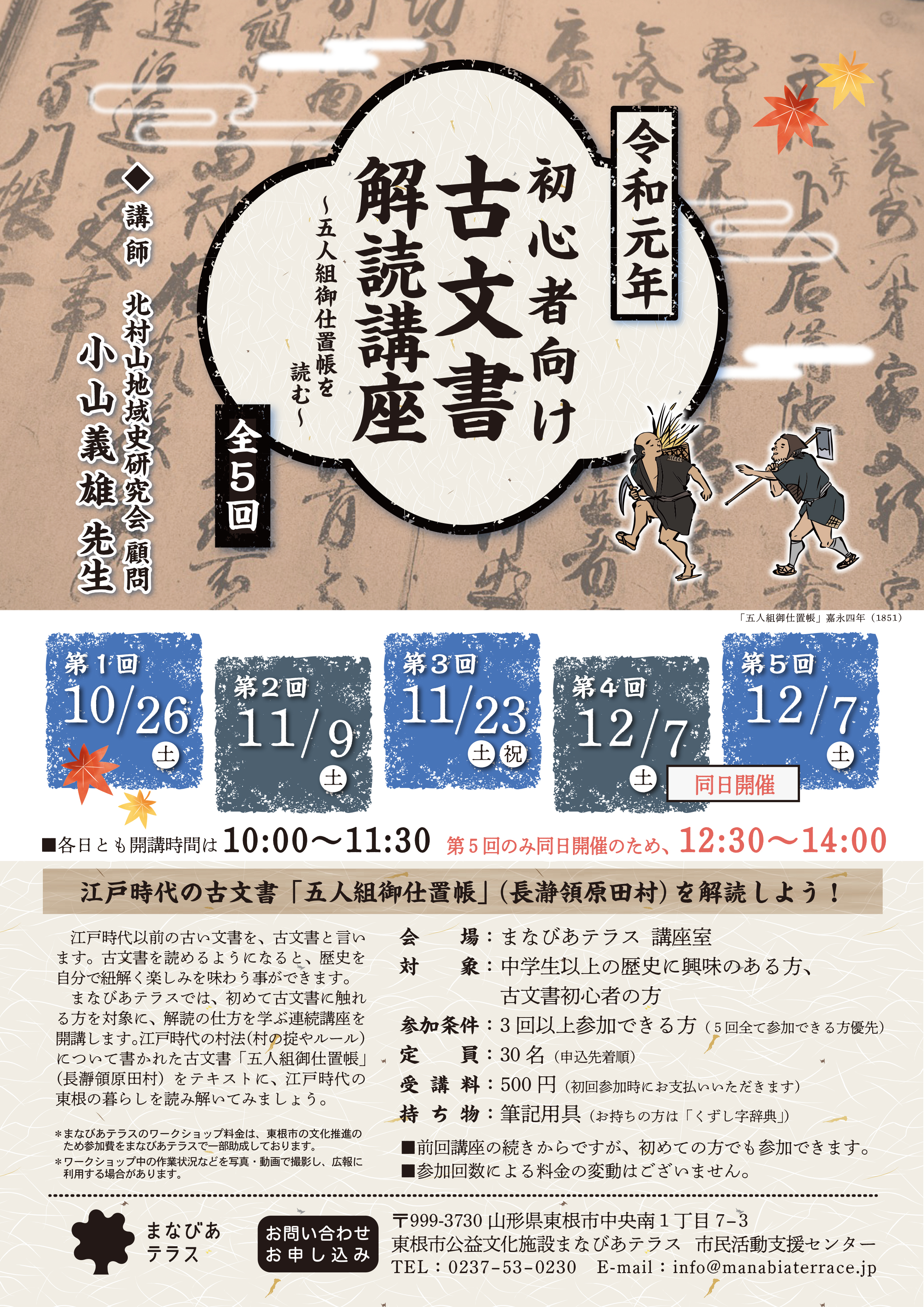 令和元年 初心者向け 古文書解読講座~五人組御仕置帳を読む~(全5回)