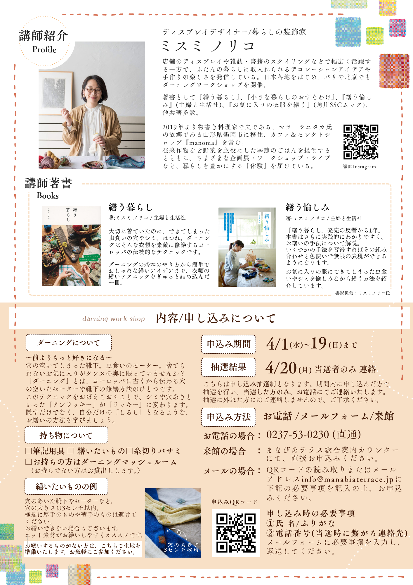 前よりもっと、好きなる!ミスミノリコさんに教わるダーニングワークショップ