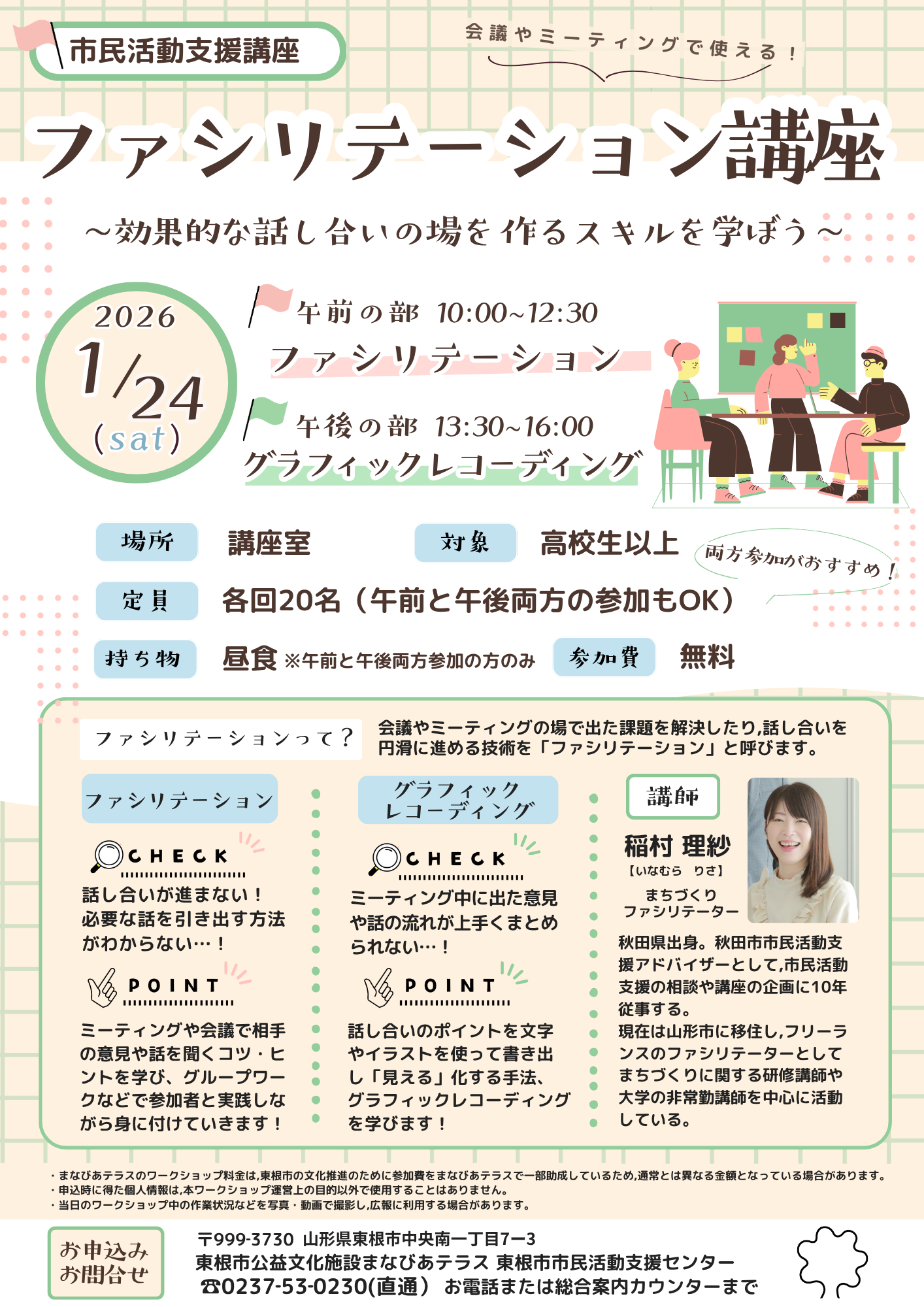 講 師:稲村 理紗(まちづくりファシリテーター)
