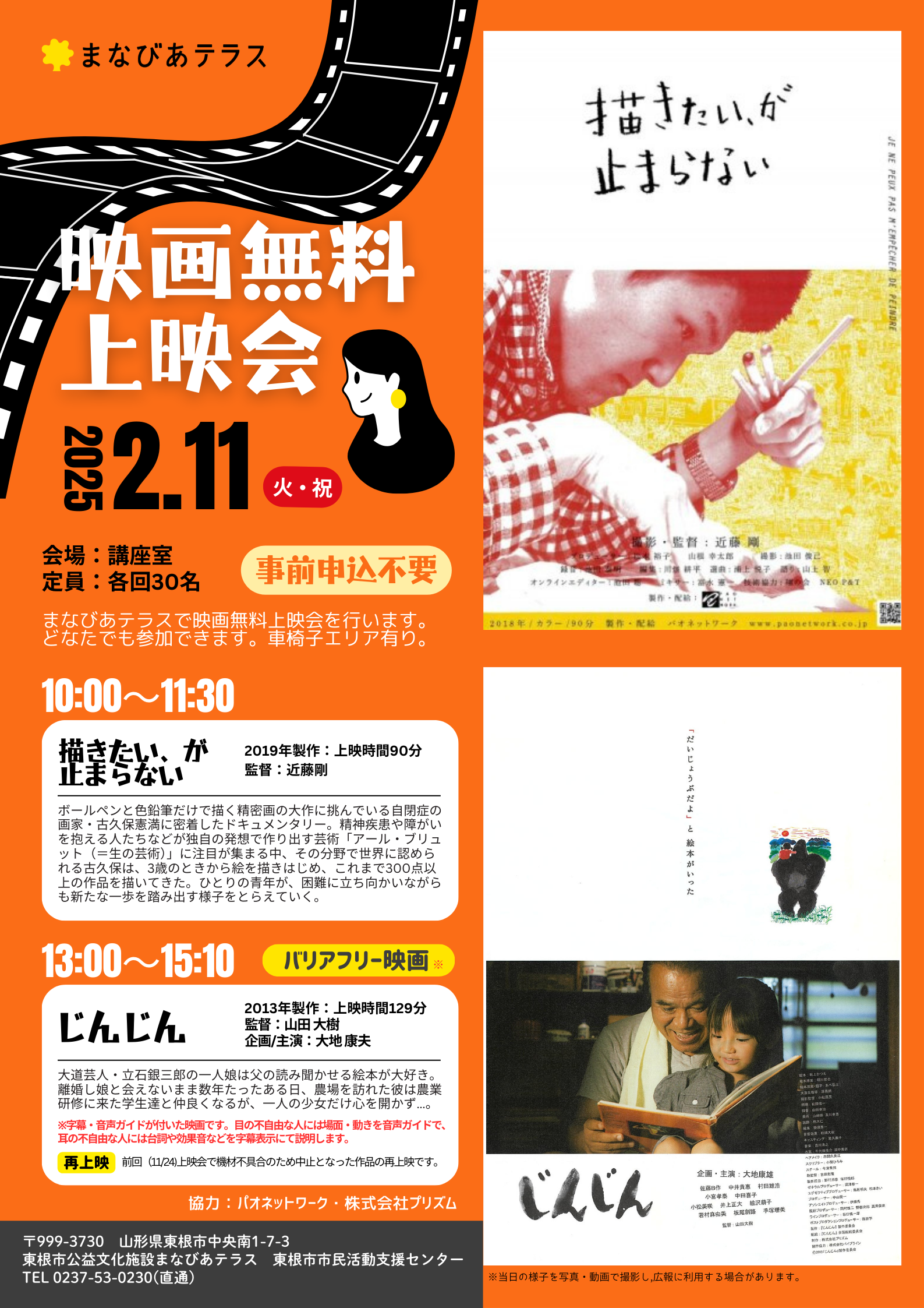 映画無料上映会「描きたいが、止まらない」・「じんじん」