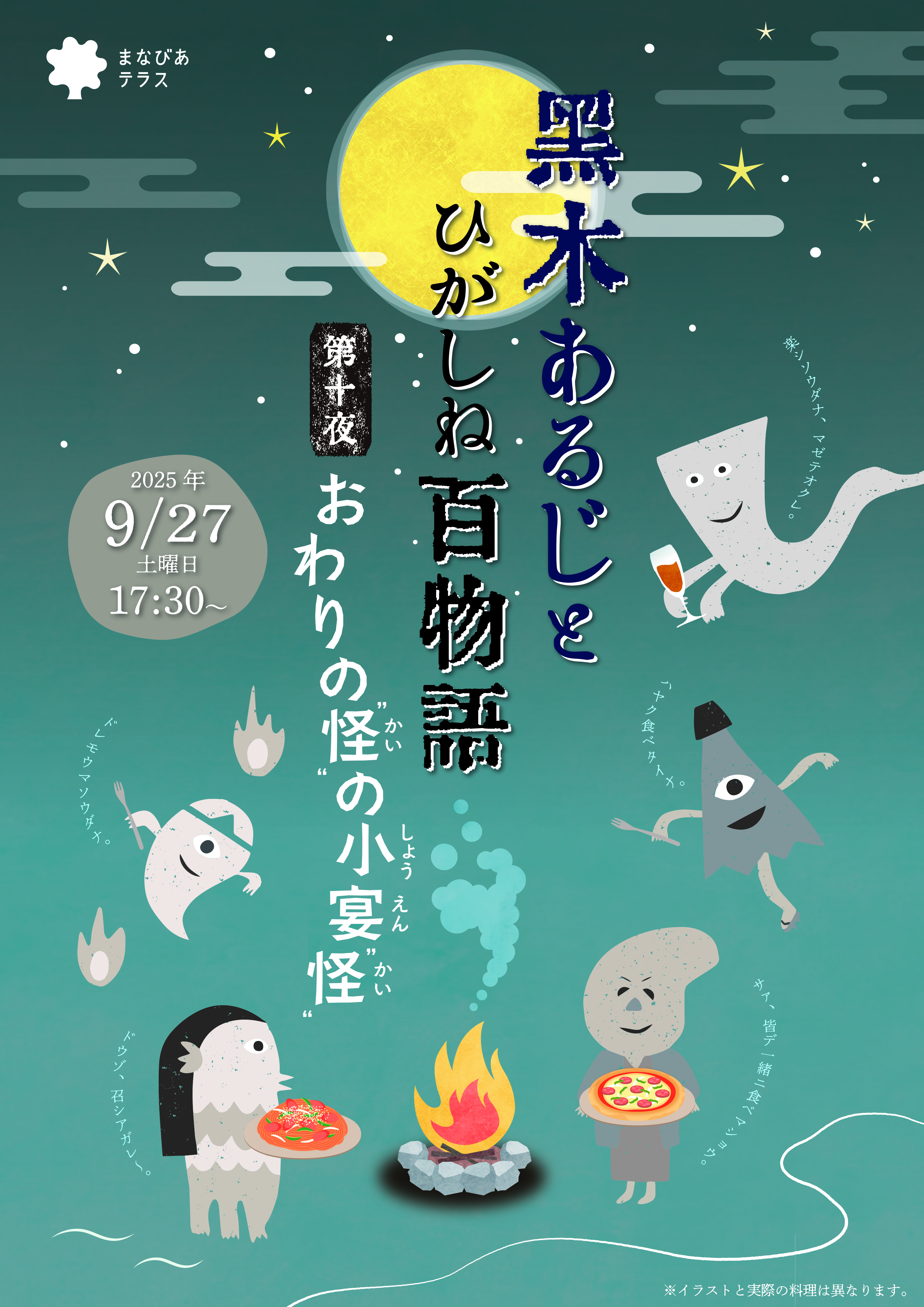 特製ディナーをいただきながら、黒木あるじ氏の怪談会と、第一夜から第九夜までの振り返りを行います。