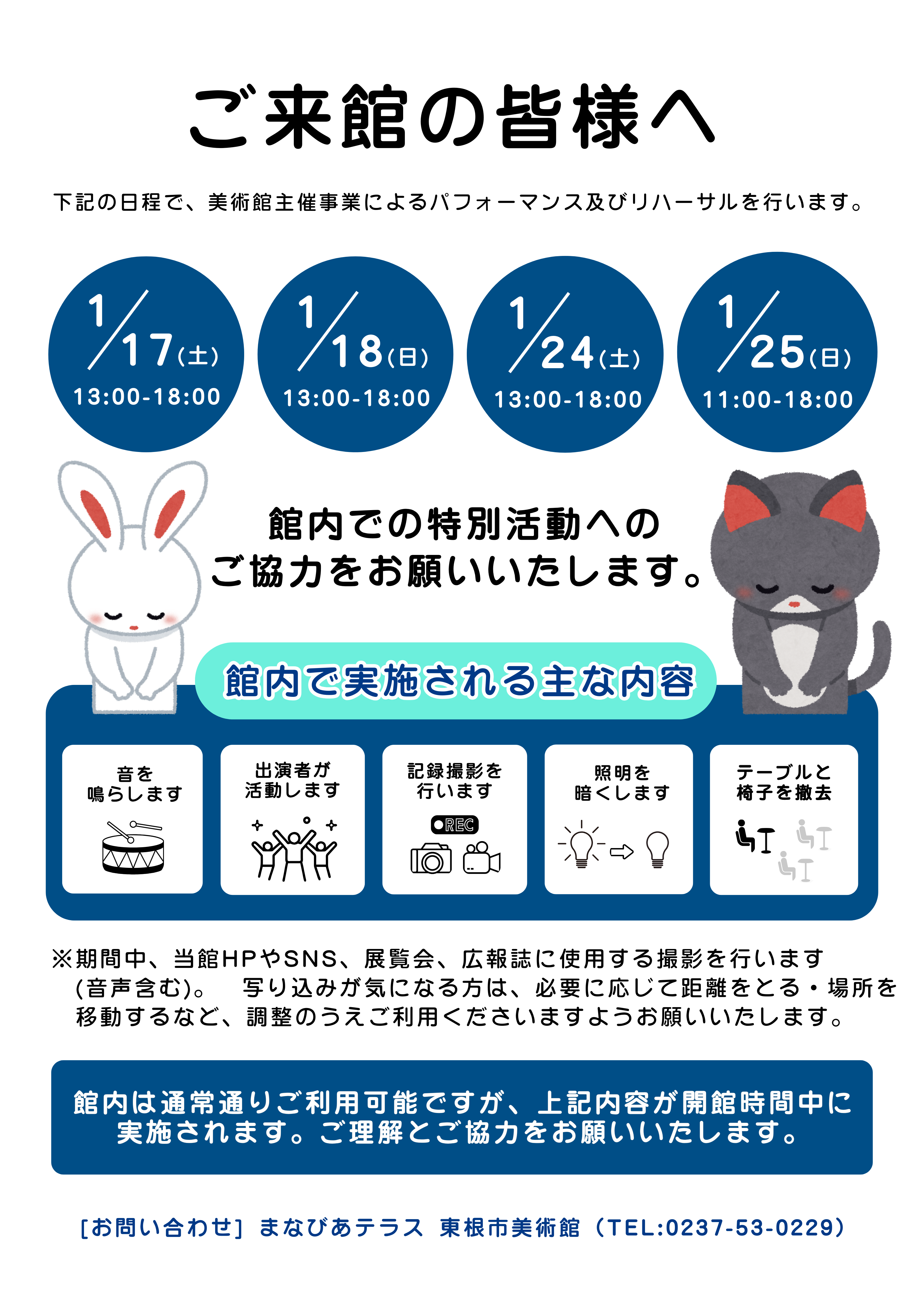 【1月17日(土)・18日(日)・24日(土)・25日(日)】館内で開催する特別活動へのご協力のお願い